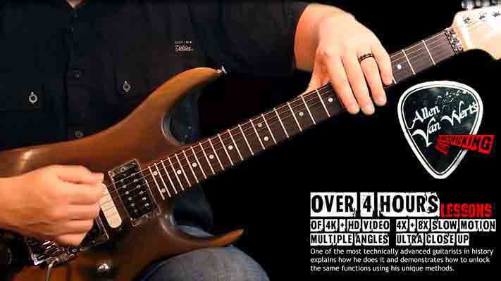 Allen uses V-Picks guitar picks and Dark Horse guitar strings