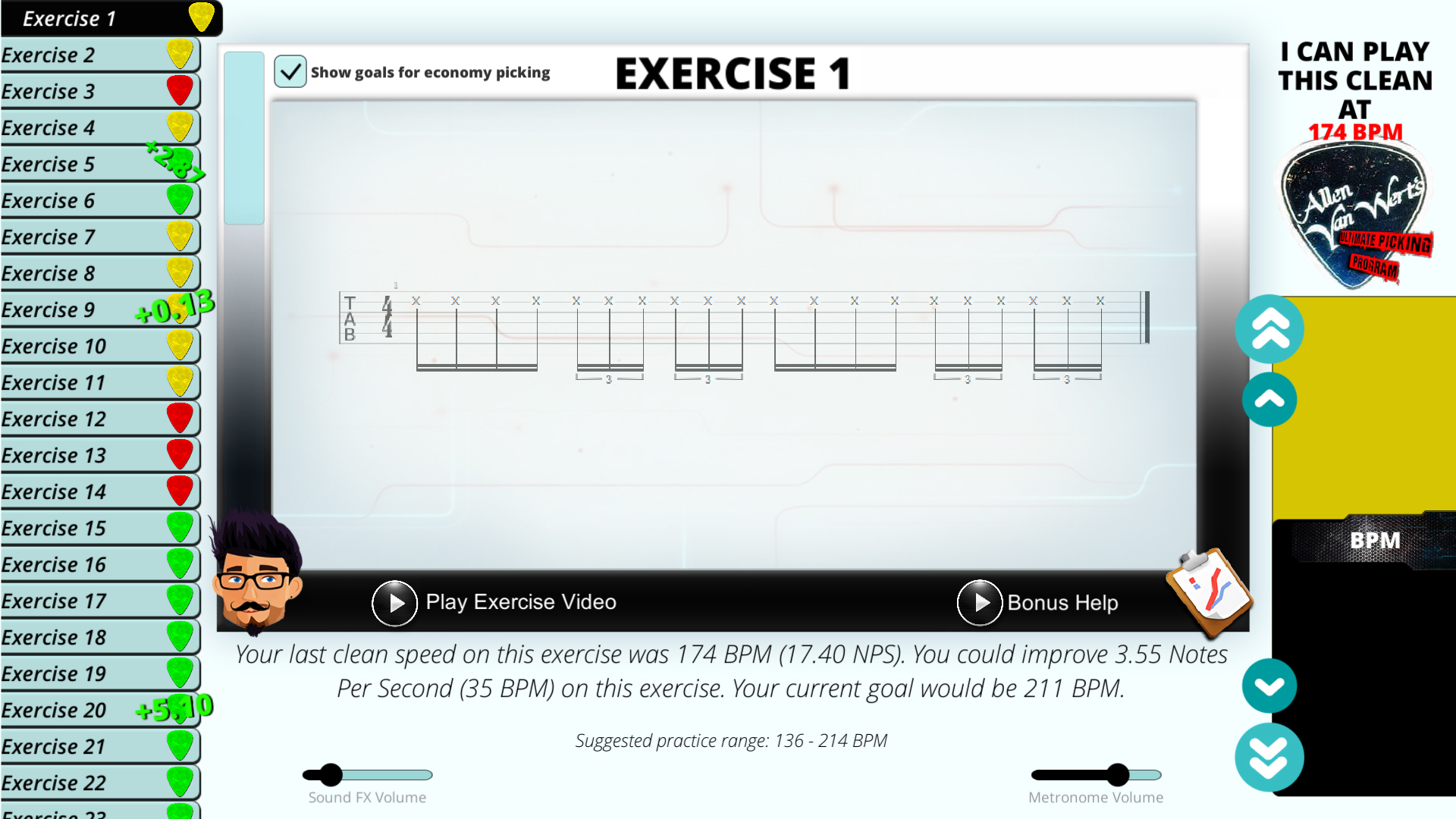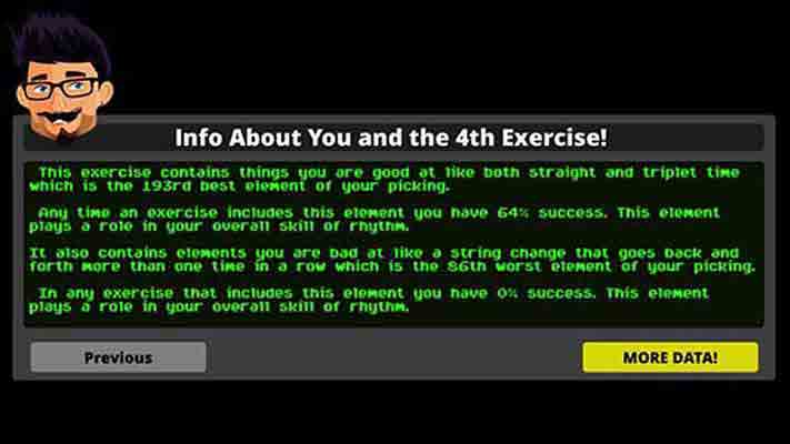 After you take the assessment test you will only need to practice the few exercises it tells you to practice. It focuses on any flaws in your playing.